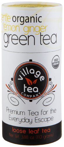 Gaining popularity due to all of the potential health benefits green teas are non oxidized keeping the leaf green, the liquor light and the taste mild. This uplifting combo is tasty and invigorating. It is delicious hot or iced and has quickly become a house favorite. The numerous positive benefits of green tea and the stomach soothing properties of ginger makes this a great selection.../ Village Tea Company Gentle Organic Lemon Ginger Green Loose Leaf Tea, 3.88-Ounce Canisters (Pack of 2) / green tea